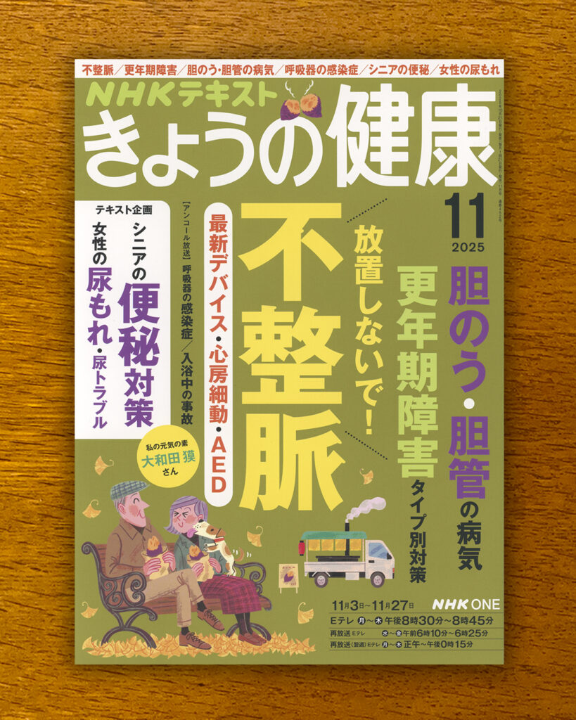 きょうの健康 11月号Posted on 2025年11月20日By ハラアツシ NHKテキスト「きょうの健康」11月号の表紙イラスト。秋の公園でやきいもを頬ばるシニア夫婦を描いています。 Filed under: 2025年Tagged with: 人物, 雑誌表紙, 風景